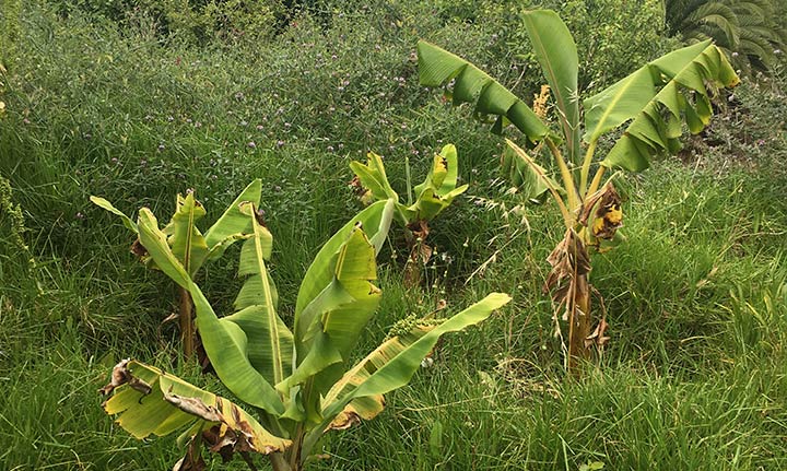Unsere vier Jungbananen und herrlicher Topf-Basilikum